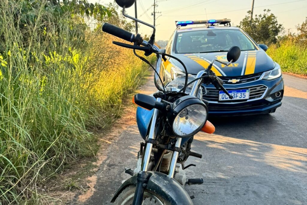 Uma equipe da Polícia Rodoviária Federal (PRF) apreendeu, nesta quarta-feira, 24, uma motocicleta roubada, que estava com um adolescente de 14 anos, no km 118 da BR 364. A abordagem foi motivada pelas condições irregulares do veículo, que não possuía o equipamento obrigatório, e pelo fato do condutor estar usando chinelos, o que chamou a atenção dos agentes.