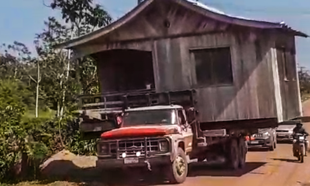 Na manhã desta sexta-feira, 12, um motorista de ônibus flagrou uma situação inusitada em Boca do Acre (AM): Uma casa de madeira estava sendo transportada por um caminhão.