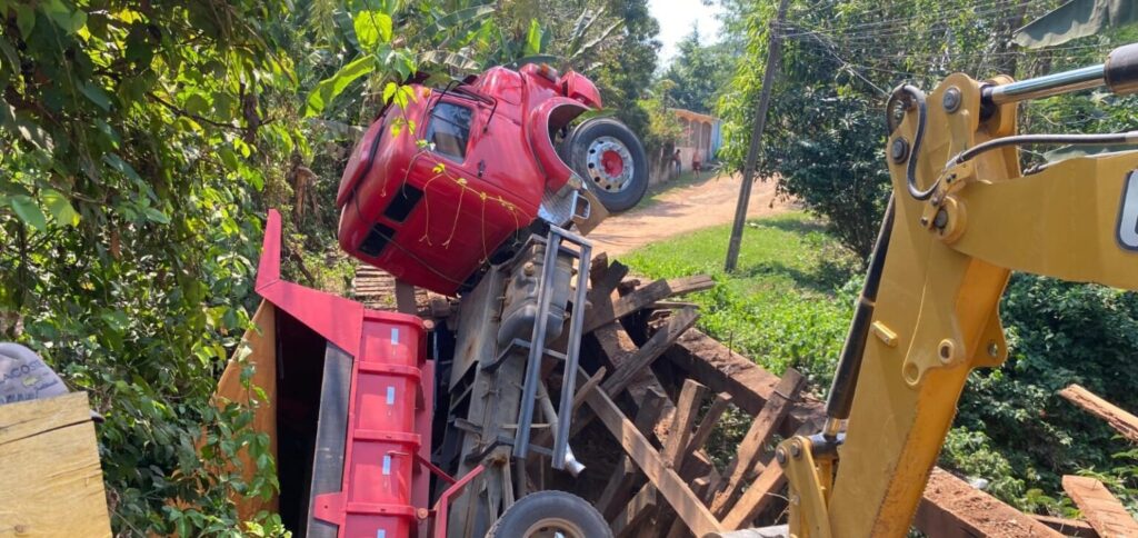 Segundo informações de testemunhas, uma caçamba trafegava no sentido centro-bairro carregada de areia, quando passou sobre uma ponte de madeira que não suportou o peso do veículo e acabou desabando.