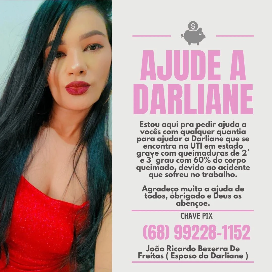 O PIX para quem quiser ajudar a família a custear as despesas é (68) 99228-1152– João Ricardo Bezerra de Freitas (esposo de Darllyane).