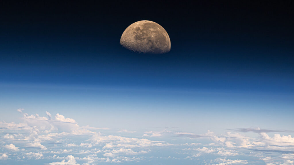 O astronauta Matthew Dominick, a bordo da Estação Espacial Internacional, registrou uma imagem impressionante da tempestade tropical Hone, próxima ao Havaí. Enquanto observava a formação do fenômeno natural pela cúpula da estação, o astronauta foi surpreendido pela beleza do pôr-do-lua, que criou um cenário único e inspirador.
