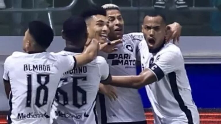 1×0. Aos 10, o Botafogo abriu o placar. Matheus Martins disputou lance pela direita, a bola ficou espirrada dentro da área com Savarino, que brigou com a defesa e, já caído, cruzou para Igor Jesus completar para as redes.