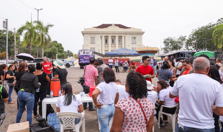 Na manhã desta quarta-feira, 07, os trabalhadores da educação estadual se manifestaram em frente ao Palácio do Governo, em Rio Branco, para requerer do Estado a retomada de 10% do valor de referência nos vencimentos dos servidores e marcar o primeiro dia de greve.