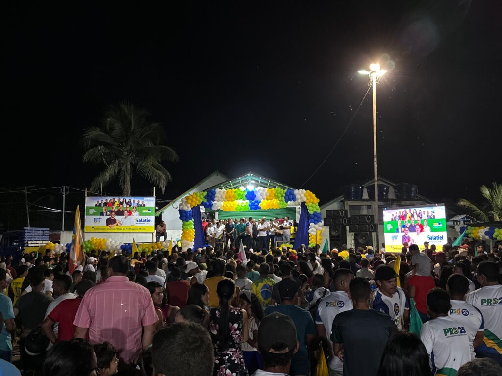 Na noite de sexta-feira (02), a população de Rodrigues Alves compareceu em massa para prestigiar o lançamento das candidaturas de Salatiel Magalhães e Neto do Jamilson, a prefeito e vice-prefeito, respectivamente. O evento em praça pública foi marcado pelo entusiasmo dos mais de 3 mil apoiadores em ” continuar com os filhos de Rodrigues Alves”.