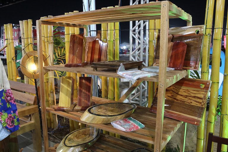 Com um estilo rústico, os móveis e utensílios em madeira expostos no estande do Instituto de Administração Penitenciária do Acre (Iapen) têm chamado a atenção dos cruzeirenses. As peças são fabricadas por detentos, na marcenaria da Unidade Penitenciária de Cruzeiro do Sul, e vão desde pequenos objetos como tábuas de cortar carne, luminárias e suportes, até bancos, mesas e cadeiras.
