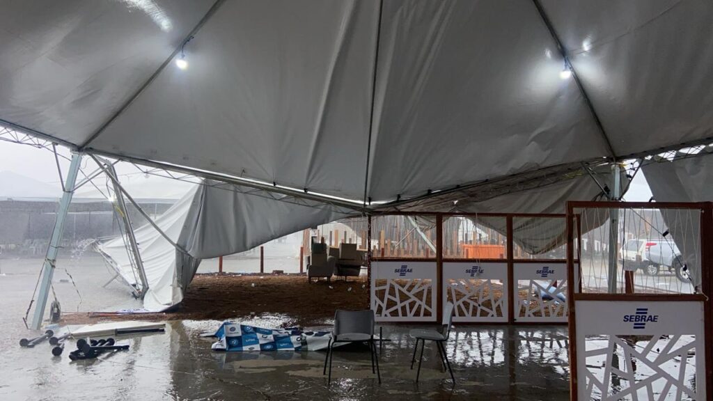 Por meio das imagens, é possível observar boa parte da estrutura do local comprometida devido à ventania e a forte chuva, causando prejuízos materiais. Felizmente, ninguém se feriu.