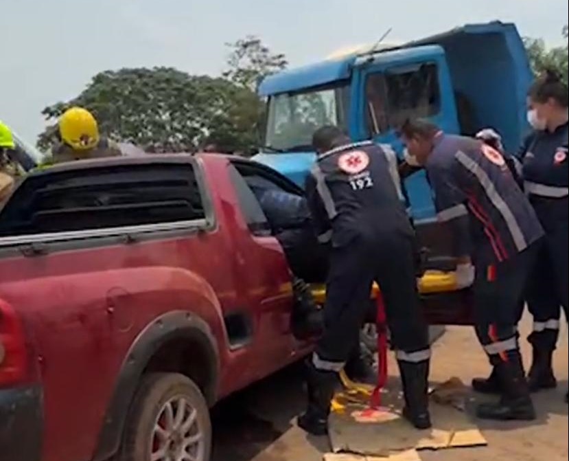 Um acidente grave ocorreu na manhã desta terça-feira, 24 de setembro, na AC-10, km 1, na estrada do Porto Acre, no bairro Alto Alegre. O acidente envolveu uma colisão entre um veículo Montana, de placas NAA 0600, e uma caçamba azul.