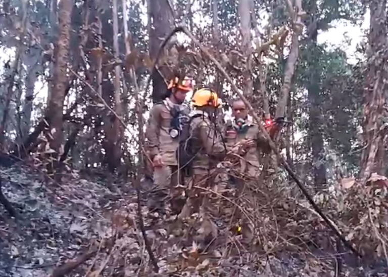 Assim, as imagens capturadas no local mostram a atuação dos militares e moradores, sendo possível observar as árvores queimadas e o perigo que há na área, pois, com a base queimada, há o risco de cair em cima das pessoas.