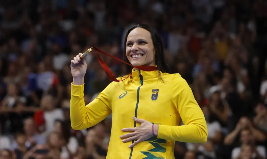 O Brasil conquistou mais nove medalhas nesta quarta-feira, 4, nos Jogos Paralímpicos de Paris. Agora, a delegação soma 57 pódios, sendo 15 ouros, 15 pratas e 27 bronzes. A nadadora pernambucana Carol Santiago faturou seu terceiro ouro nesta edição, além de uma prata no revezamento 4×100 livre – 49 pontos, e chegou a nove pódios na história.