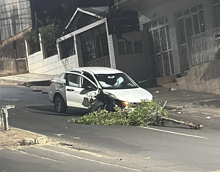 Na madrugada deste domingo, 01, por volta das 04h, um carro atravessou o canteiro central da Avenida São Paulo, em Cruzeiro do Sul, chegando a arrancar uma árvore.