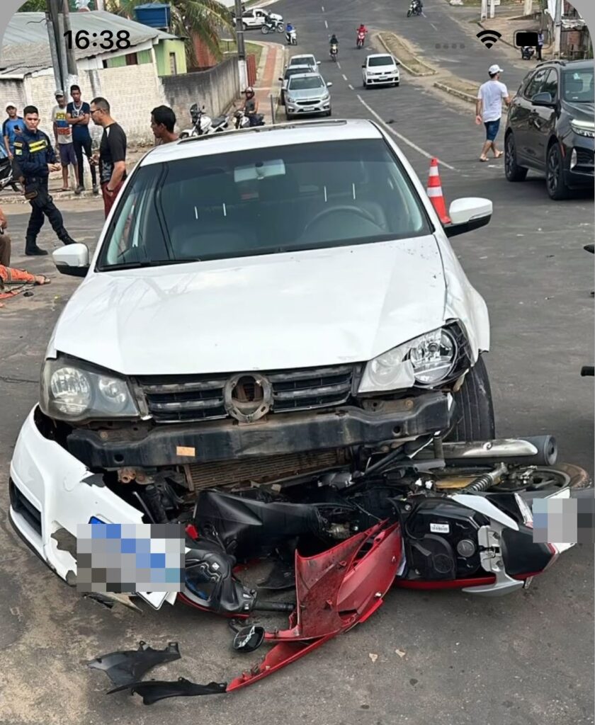 Nesta sexta-feira, 13, um acidente envolvendo um carro e uma moto foi registrado na rotatória da Avenida Copacabana com a Avenida São Paulo, em Cruzeiro do Sul.