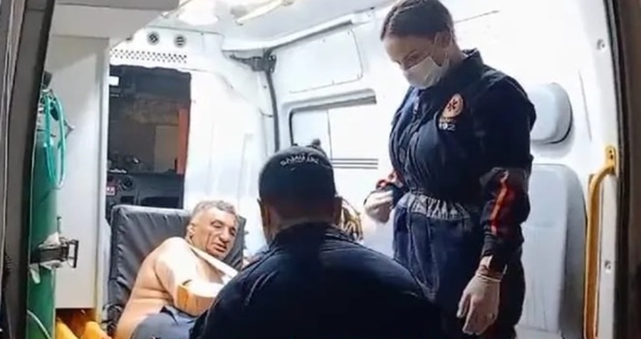 Raimundo Soares de Lima foi levado ao hospital com suspeita de fratura no braço, trauma na cabeça (escoriação contusa crânio) e várias escoriações pelo corpo. Seu estado de saúde inspira cuidados e ele permanece em observação.