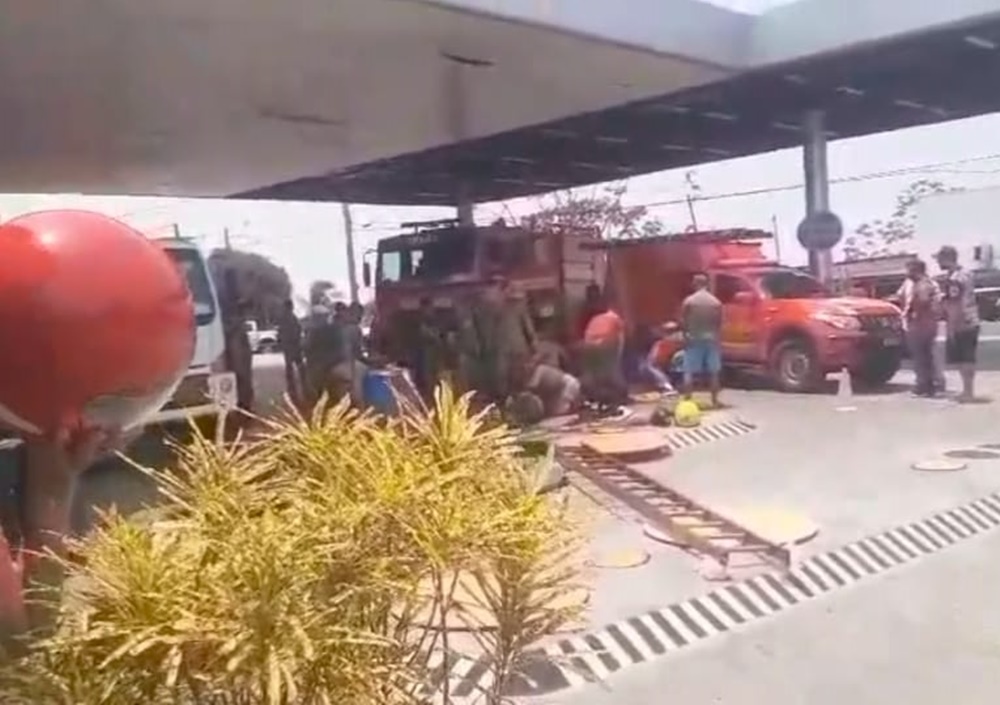 Segundo informações preliminares, um funcionário do posto caiu dentro do tanque de combustível enquanto realizava a limpeza do local e acabou desmaiando.