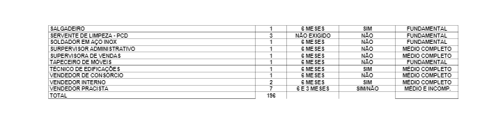 Sine oferta 196 vagas de emprego nesta segunda-feira (9); confira
