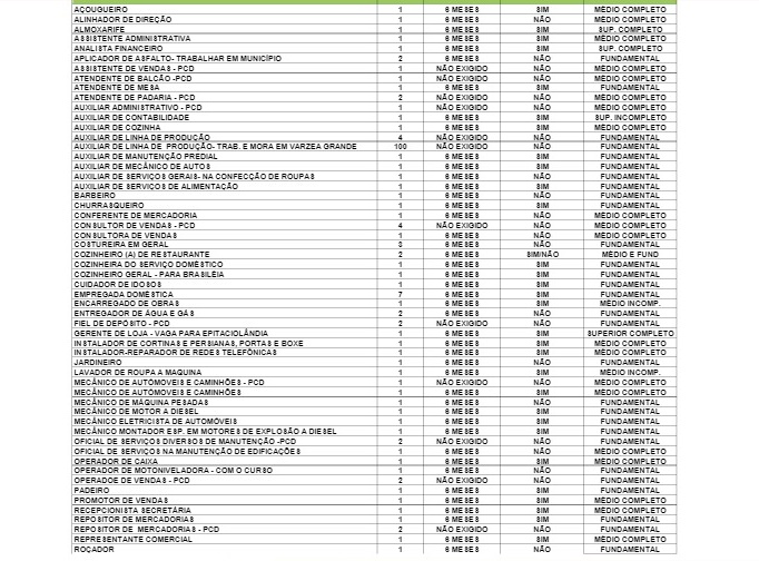 Para se candidatar, é necessário atualizar o cadastro no Sine. Se ainda não possuir cadastro na instituição, é preciso apresentar os seguintes documentos: Carteira de Trabalho, Identidade/CPF, Título de Eleitor, comprovante de escolaridade e comprovante de endereço. As vagas disponíveis variam desde assistente administrativa e operador de caixa.