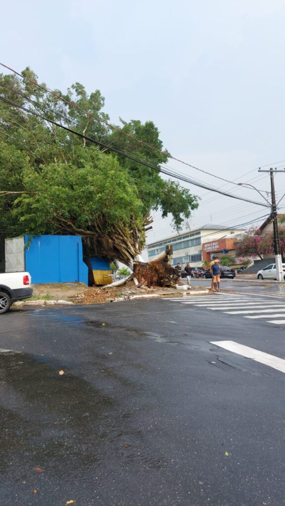 Na tarde desta quinta-feira (12), por volta das 14h, uma forte tempestade atingiu Cruzeiro do Sul, interior do Acre, provocando estragos nos bairros da cidade. Uma árvore de grande porte em frente à Maternidade foi arrancada pela raiz, resultando em queda de energia.