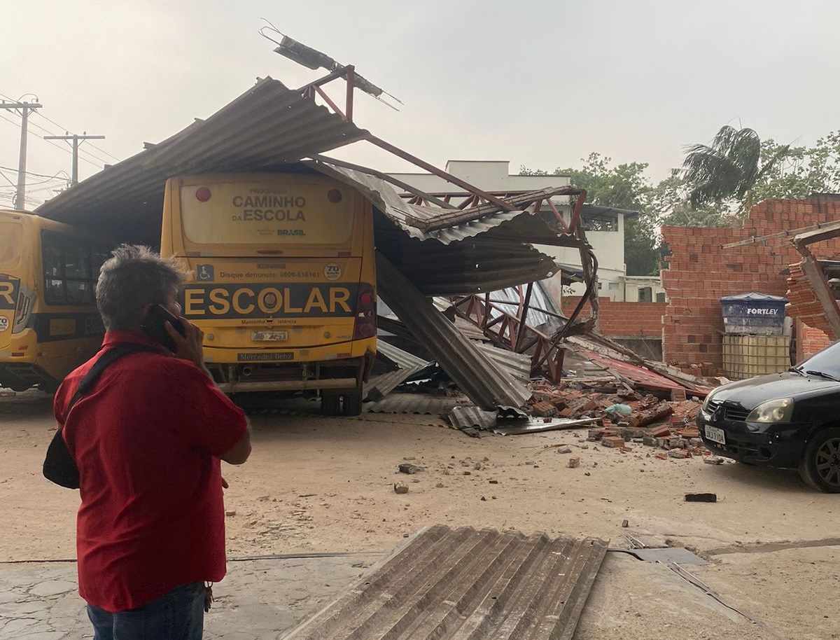 No Aeroporto Velho, parte do telhado do posto de gasolina Atem foi arremessada em cima de um estabelecimento, atingindo também alguns veículos que estavam estacionados.