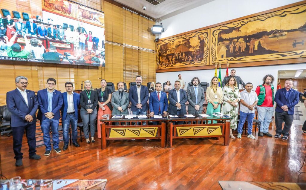 A reunião contou com a presença do presidente Gonzaga, senador Alan Rick, deputado federal Zezinho Barbary, prefeito de Porto Walter, César Andrade, representantes do Deracre, Ibama, Imac e demais parlamentares.