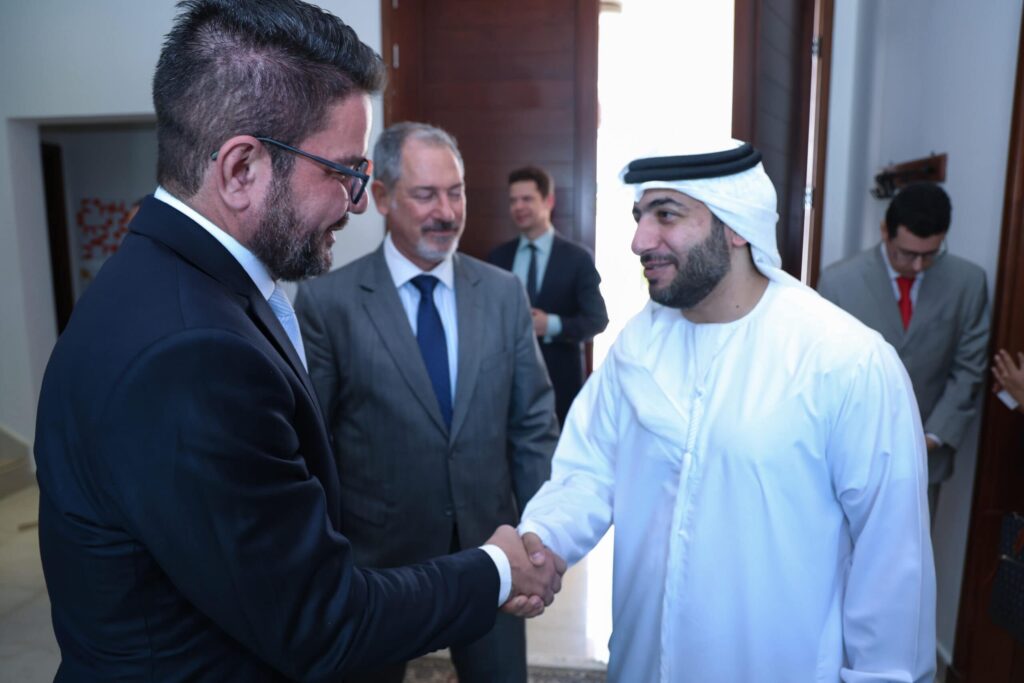 Em agenda no exterior, o governador do Acre, Gladson Cameli, foi recebido pelo embaixador do Brasil nos Emirados Árabes Unidos (EAU), Sidney Leon Romeiro, em Abu Dhabi, capital do país, nesta quarta-feira, 3. Estiveram presentes também autoridades e empresários ligados a instituições bancárias, de transformação energética e agricultura sustentável, além do secretário de Estado da Fazenda, Amarísio Freitas, e do gerente-geral do Projeto de Créditos de Carbono no Acre, Victor Hugo Rondon.