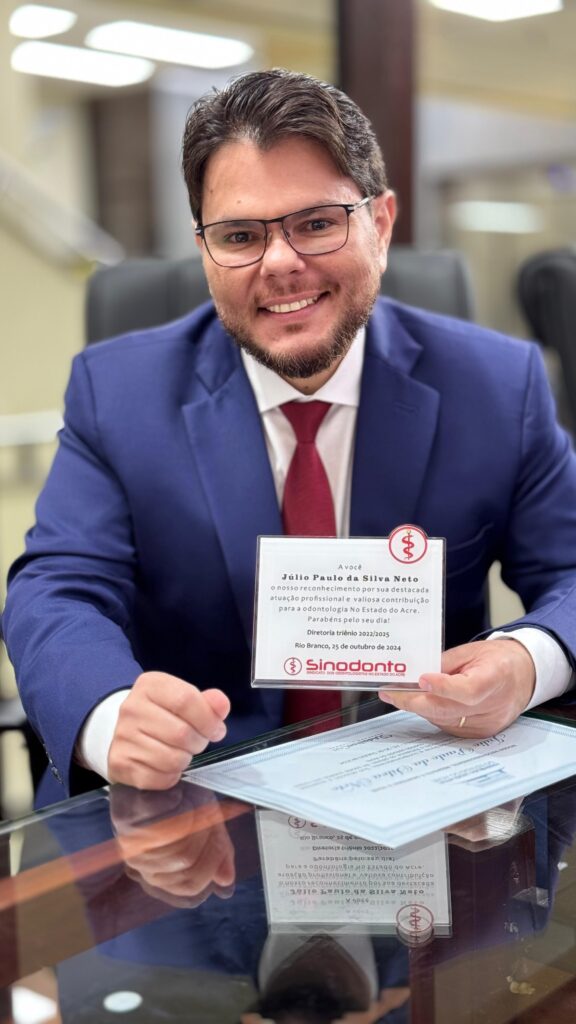 Na celebração do Dia do Dentista, Júlio Paulo, profissional reconhecido na área odontológica, foi homenageado pela Assembleia Legislativa do Estado do Acre em um evento que destacou sua trajetória e dedicação à profissão. Com quase 20 anos de carreira, Júlio recebeu o reconhecimento das mãos do Deputado Adailton e do Sindicato da Odontologia do Estado do Acre, um gesto que ele descreveu como um motivo de grande orgulho e gratidão.