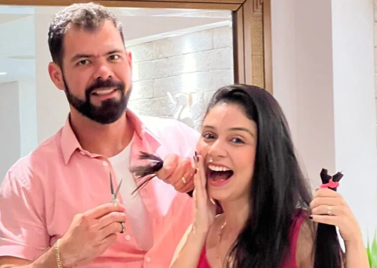 Ao lado do esposo, que foi quem cortou o cabelo, Patrícia lembra que a ação faz parte do Outubro Rosa, mês da conscientização sobre o câncer de mama, e lembra de casos na própria família. “Em nossa família temos vencedoras e são prova de que o diagnóstico precoce salva vidas”, contando que faz a doação desde 2015.