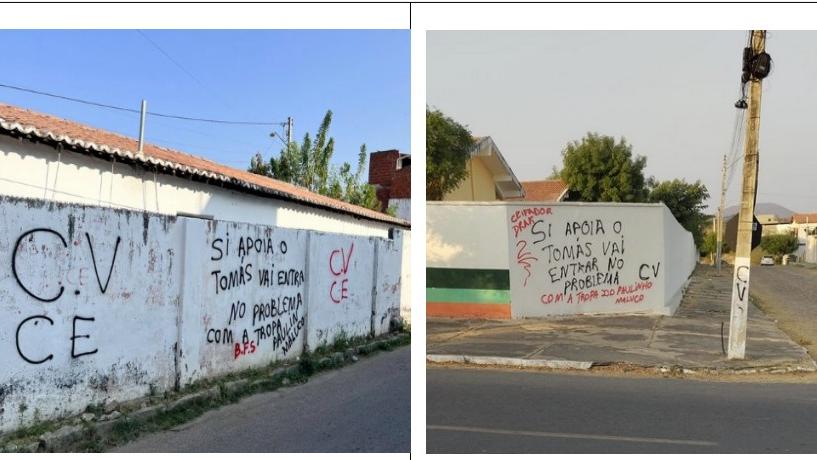 As ameaças pichadas nos muros foram assinadas pela ‘Tropa do Paulinho Maluco’, identificado pelas autoridades como Anastácio Pereira Paiva. Ele é apontado como principal liderança do Comando Vermelho na cidade e nos municípios vizinhos.