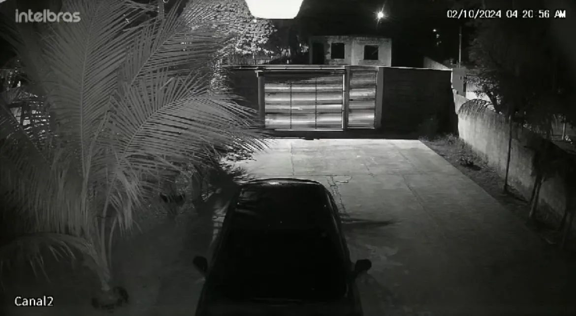 Câmeras de segurança de uma residência capturaram o momento do tremor, no qual o portão de ferro da casa treme visivelmente e um cachorro aparece assustado, latindo e correndo.