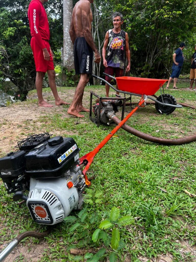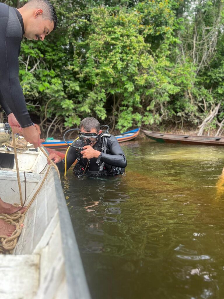 Diante disso, a equipe iniciou os mergulhos e conseguiu localizar o motor bomba, o carro de mão e o motor da embarcação, que foram retirados da água. Esses bens recuperados somam cerca de R$ 4.400,00. Além disso, os materiais que foram totalmente perdidos – 40 sacas de cimento e 3 metros de areia – somam um prejuízo de cerca de R$ 3.050,00.
