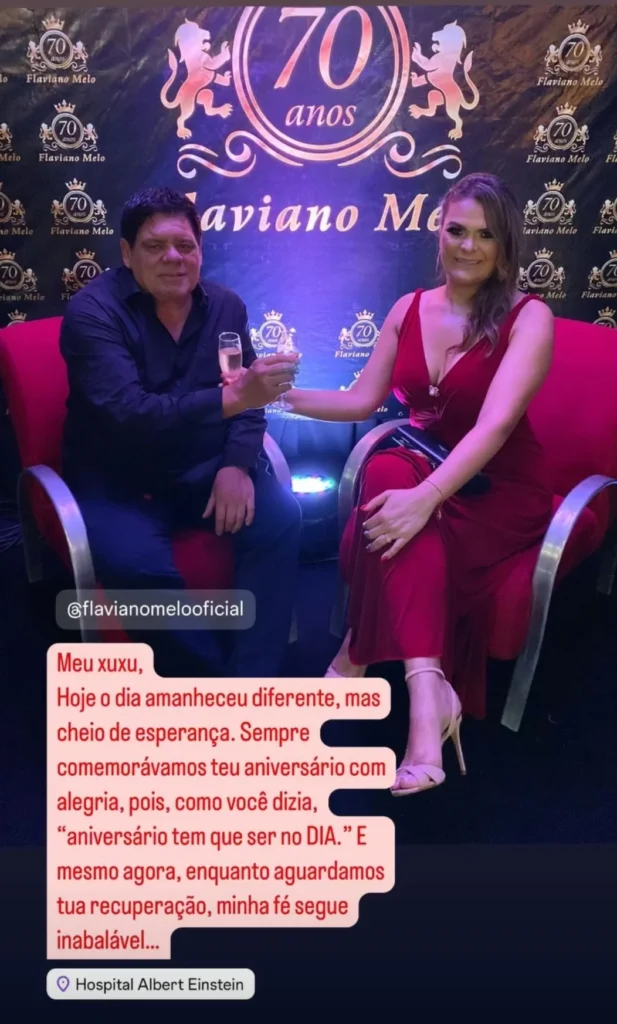 Nas redes sociais, a esposa de Flaviano, Luciana Videl, publicou uma sequência de votos, onde o parabeniza e lembra que o ex-governador sempre gostou de comemorar o aniversário reunindo os companheiros do MDB e a família. “Levanta daí, meu xuxu, e vamos celebrar teu dia como você merece”, escreveu.