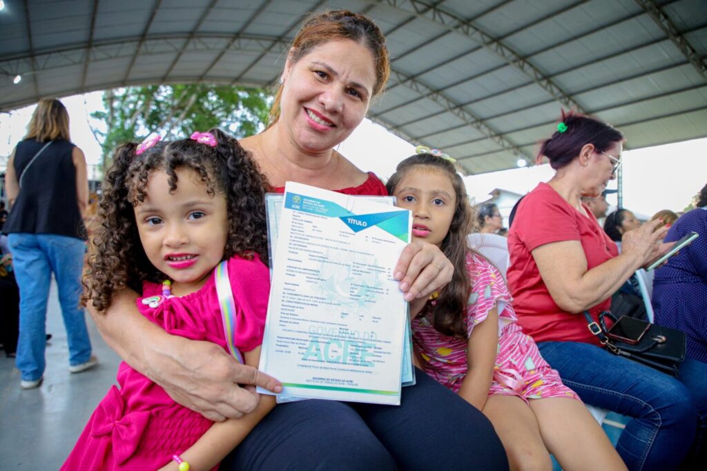 Para garantir o direito de propriedade a mais de 500 famílias de áreas rurais e urbanas, o governador Gladson Cameli realizou a entrega de 485 títulos definitivos nesta sexta-feira, 29.