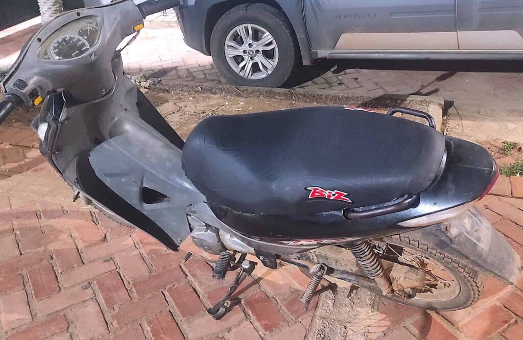 Durante uma abordagem, uma jovem foi avistada conduzindo uma motocicleta modelo Biz de cor preta. Após receber ordem de parada, que foi obedecida, a polícia verificou que a condutora era uma adolescente sem CNH e sem portar o documento da motocicleta. Além disso, a motocicleta estava sem placa de identificação.