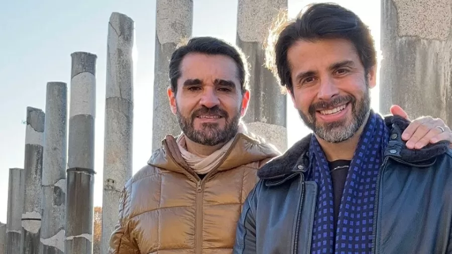 O jornalista Marcelo Cosme, 45, está curtindo a lua de mel com o marido, Frankel Brandão, na Itália.