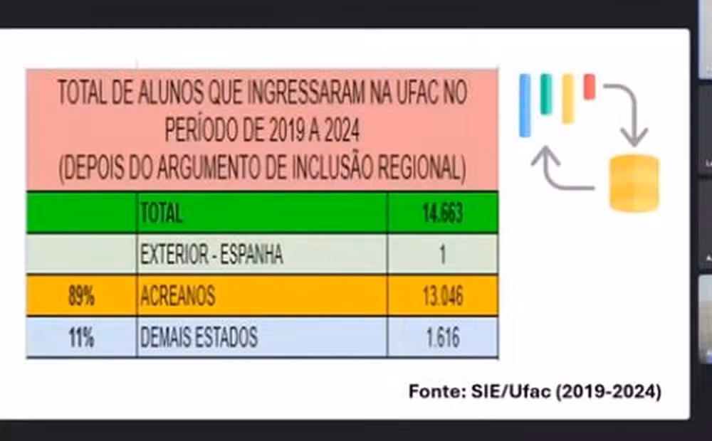 De 2019 – 2024 (depois do bônus) – 578 alunos – 301 eram do Acre (52%) contra 277 de outros estados 48%;