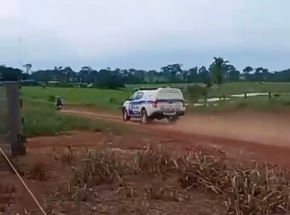 Um motociclista com uma pessoa na garupa fugiu de uma abordagem policial e foi perseguido por uma viatura da Polícia Militar (PMAC) em um ramal de Acrelândia, município no interior do Acre.
