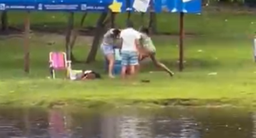 Dois homens que estavam próximo, assistiam a cena e aguardavam a calmaria por parte das ‘brigonas’, que minutos depois, aparentavam ter se acalmado.