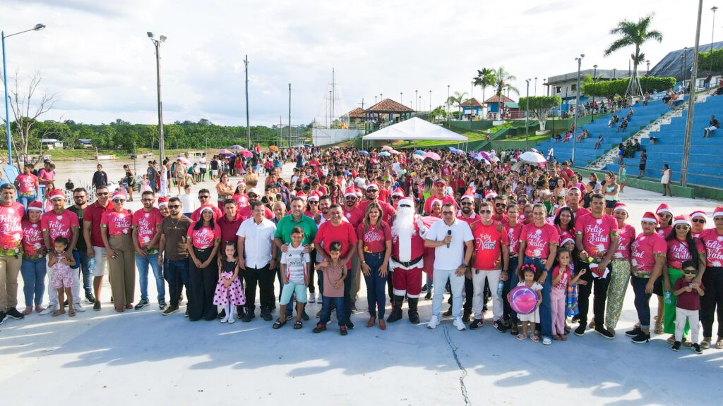 Sorriso largo no rosto, mãos aligeiradas que recebem os presentes, e olhos que agradecem. Assim, podemos definir o comportamento das crianças que receberam cerca de 4 mil presentes, doces, salgados e refrigerante neste Domingo (22), na entrega coletiva em comemoração ao Natal em Porto Walter, feita pelo Papai Noel na Concha Acústica.