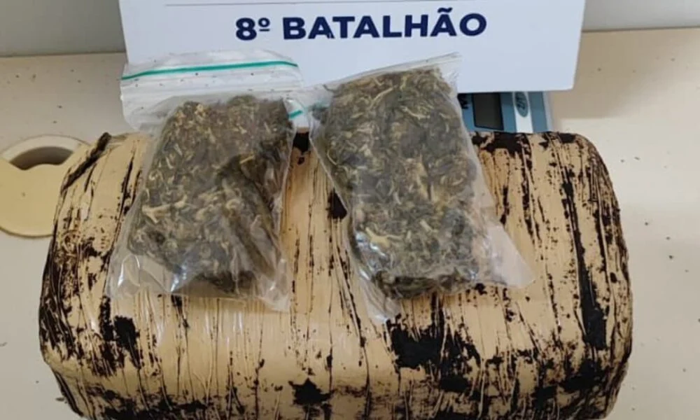 Na busca pessoal, os policiais localizaram porções de drogas com os suspeitos. Em seguida, as diligências foram ampliadas para a área de mata próxima, apontada como esconderijo do material ilícito. Após buscas detalhadas, foram encontrados 2.725 gramas de maconha e cocaína, embaladas em sacos plásticos.