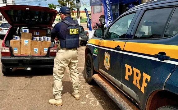 A Polícia Rodoviária Federal (PRF) apreendeu 6 mil maços de cigarro contrabandeado em uma ação de fiscalização no km 124 da BR-364, em Rio Branco. Durante a operação, a equipe da PRF deu ordem de parada a um veículo de passeio, mas o condutor desobedeceu à ordem e iniciou uma fuga em alta velocidade.