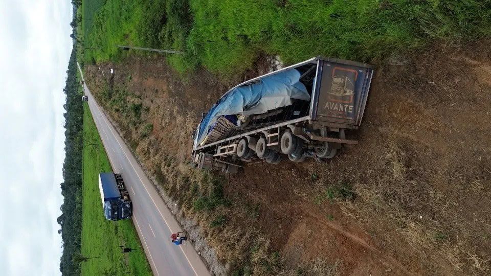 Carreta que saiu de Cruzeiro do Sul com destino a Mato Grosso tomba na BR-364