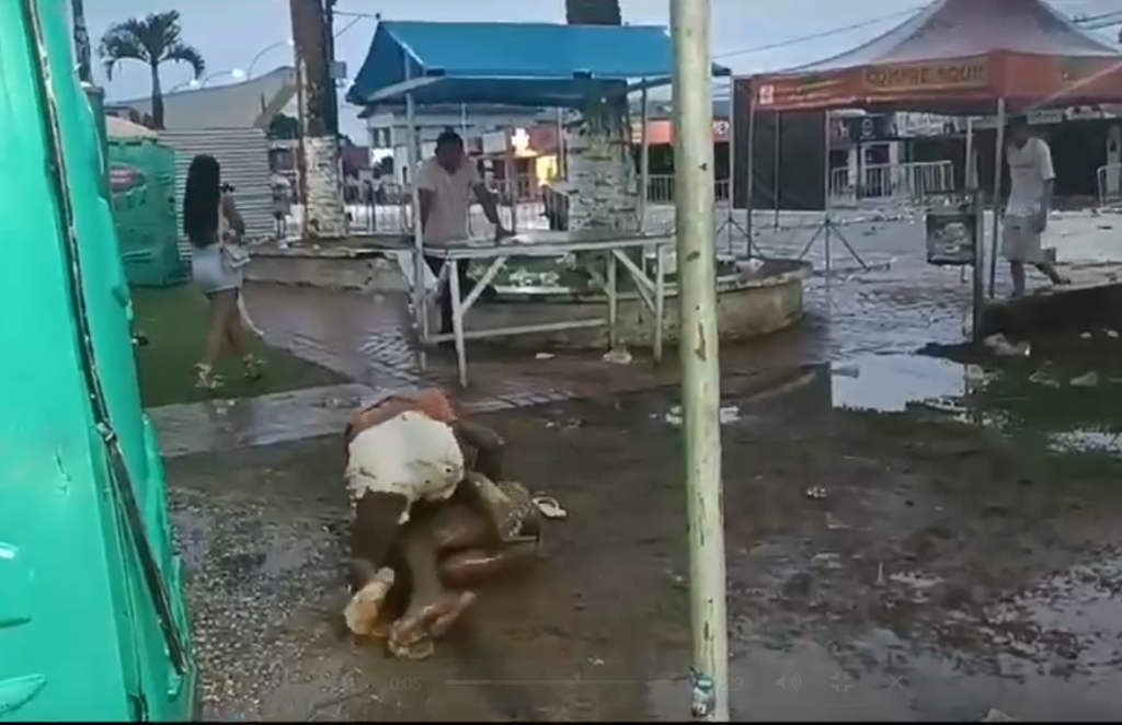 Duas mulheres protagonizaram uma cena lamentável no final da festa de réveillon e da posse do novo prefeito Gerlen Diniz, na madrugada desta quarta-feira (1º), na praça central do município de Sena Madureira, no interior do Acre.