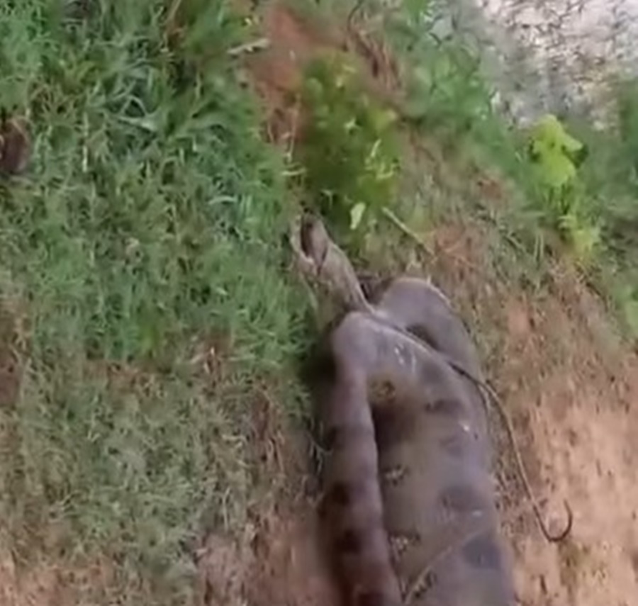 Um vídeo que circula nas redes sociais tem chamado a atenção ao registrar o momento em que trabalhadores de uma fazenda em Bujari, no Acre, se deparam com uma sucuri de cerca de 5 metros.