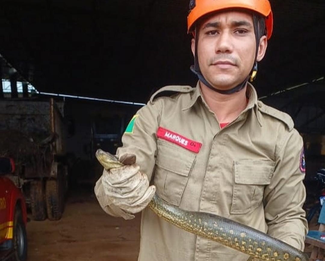 Bombeiros realizam resgate de sucuri em Rodrigues Alves; ASSISTA