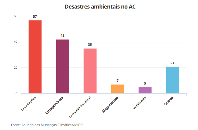 O Acre registrou 167 desastres ambientais entre 2000 e 2023, e deve considerar a realocação de cidades para áreas mais altas. Isto é o que aponta o Anuário das Mudanças Climáticas, do Centro Brasil no Clima (CBC) e Instituto Clima e Sociedade (ICS), elaborado por pesquisadores do meio ambiente.