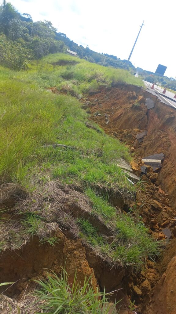 As fortes chuvas que afetaram a região do Juruá nos últimos dias, ocasionaram uma erosão em um trecho da BR-364, na ‘boca do Ramal 5’, em Cruzeiro do Sul. De acordo com um morador, a erosão iniciou-se na noite desta segunda-feira, 24.