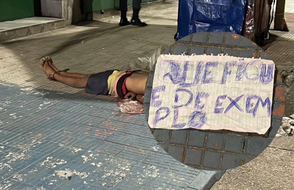 Um homem foi assassinado a tiros e seu corpo foi abandonado na rua Guilherme Moreira, no centro de Manaus, na noite de segunda-feira, 3 de fevereiro de 2025. Ao lado do cadáver, foi encontrado um bilhete com a mensagem: “Que fique de exemplo”.