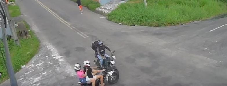 Câmeras de segurança registraram o momento exato do acidente, quando um motociclista acaba colidindo contra outro condutor, que trafegava na via principal.