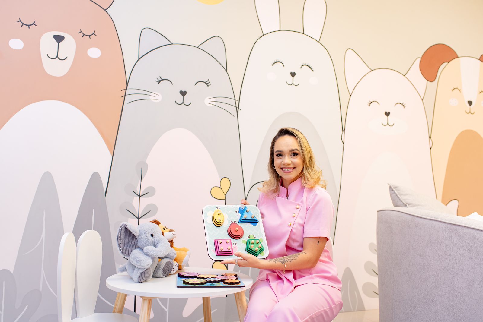 O consultório é um espaço moderno, aconchegante e pensado para proporcionar conforto e bem-estar às crianças, adolescentes e seus familiares. Com um ambiente cuidadosamente planejado, o local favorece um atendimento acolhedor, tornando as consultas mais leves e agradáveis para os pequenos pacientes.
