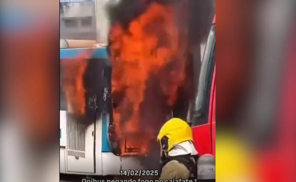 Um ônibus articulado da empresa Ricco Transportes pegou fogo na tarde desta sexta-feira (14) no bairro Calafate, em Rio Branco. O incêndio atingiu a parte traseira do veículo e chamou a atenção de moradores e motoristas que passavam pelo local.
