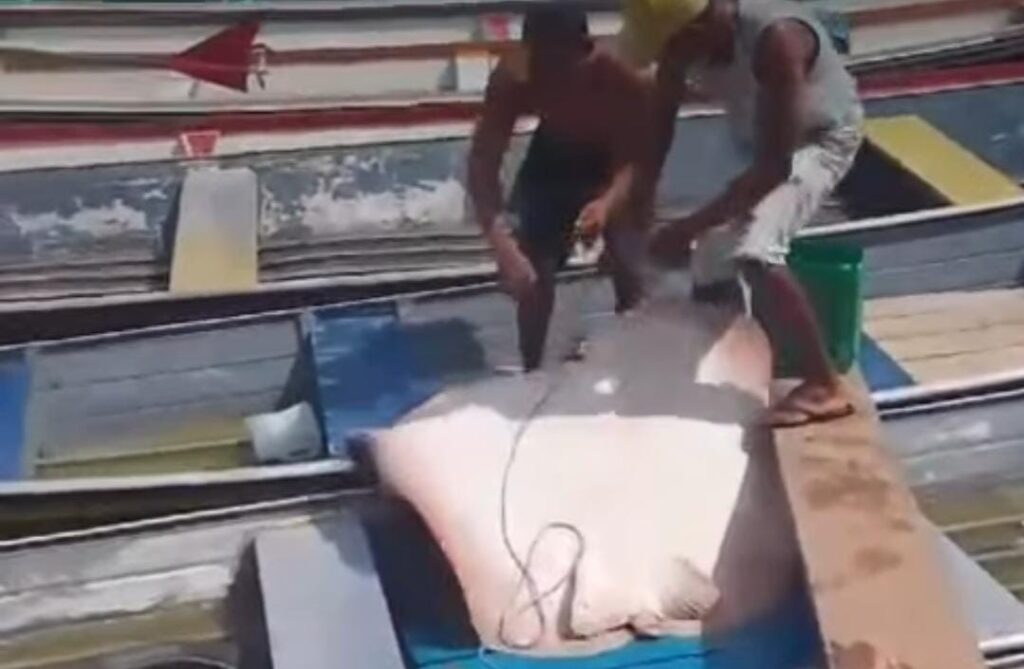 O animal não foi morto; momentos após sua captura, a arraia foi devolvida ao seu habitat natural.