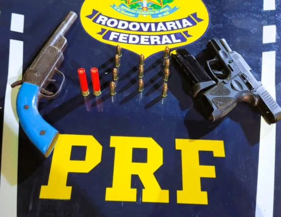Segundo informações da PRF, durante a inspeção em um veículo, a equipe localizou uma sacola contendo uma arma de fogo de fabricação artesanal. Também foi encontrada uma pistola sob o banco do motorista.